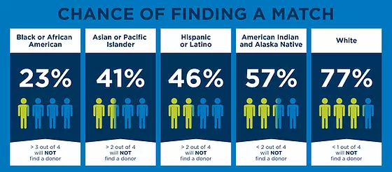 If you are Black or African American, there is a less than 25% chance of finding a match on the registry!